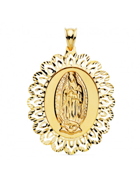 18K MEDALLA VIRGEN DE GUADALUPE CERCO 42X34 MM