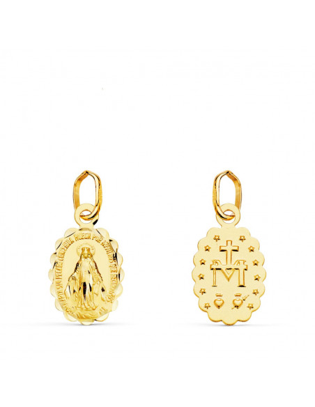 18K MEDALLA VIRGEN DE LA MILAGROSA OVAL TALLADA 12X9 MM