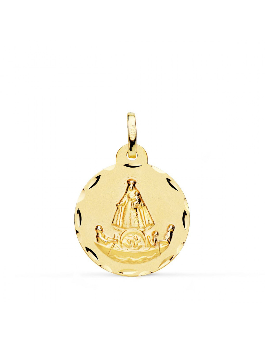 18K MEDALLA ORO AMARILLO VIRGEN CARIDAD DEL COBRE BALSA TALLADA 20 MM