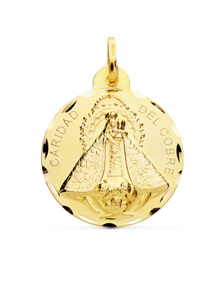 18K MEDALLA ORO AMARILLO VIRGEN CARIDAD DEL COBRE TALLADA 28 MM
