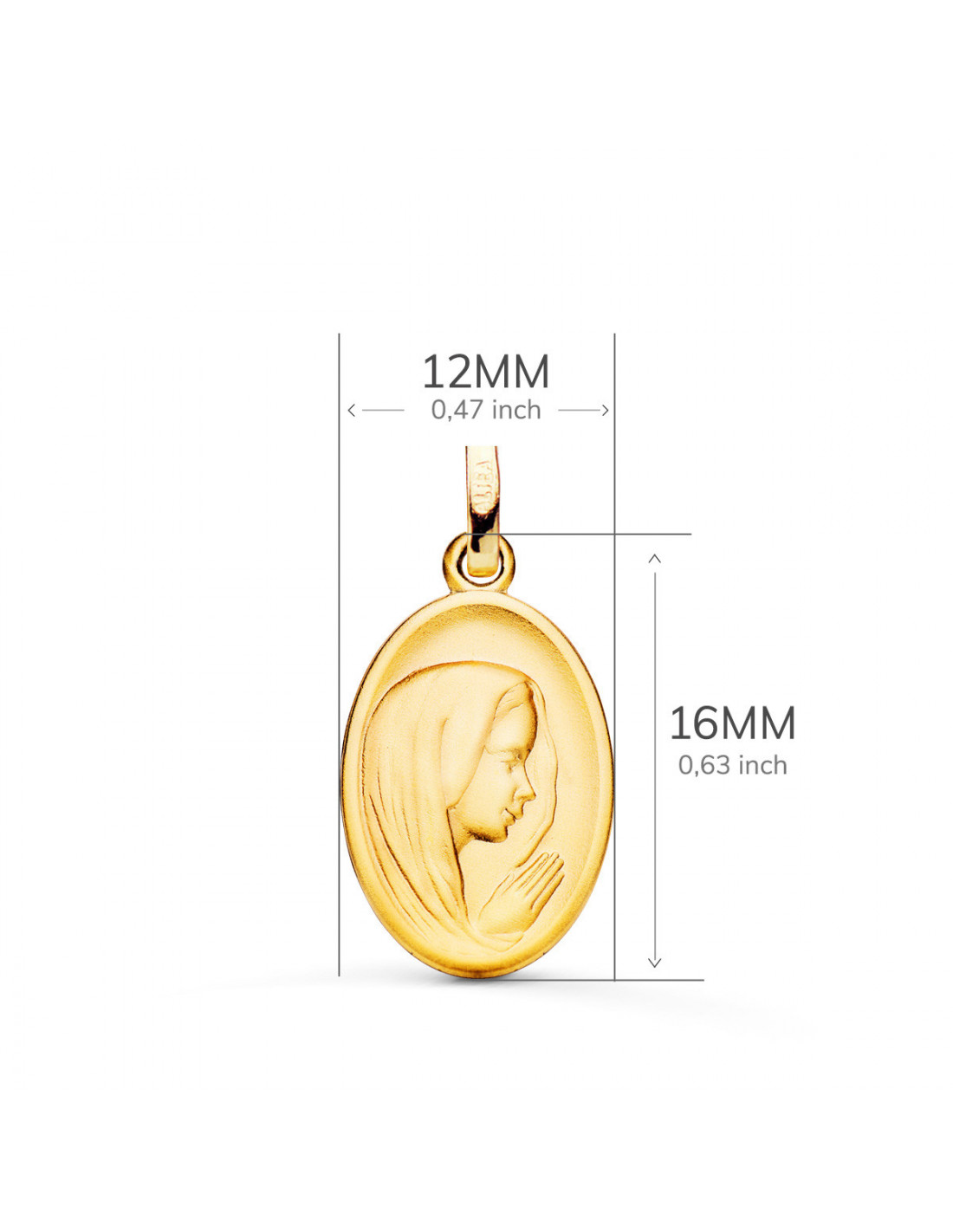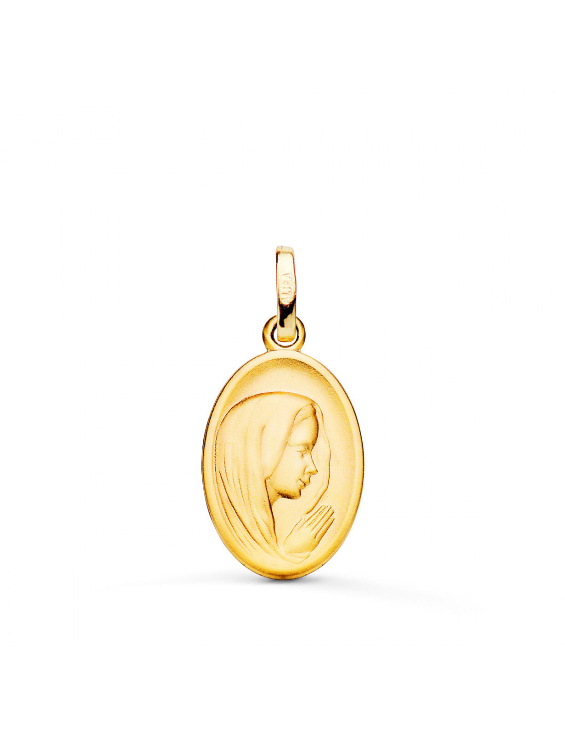 18K MEDALLA ORO AMARILLO VIRGEN NIÑA PERFIL MATIZADA Y TALLADA 16X12 MM