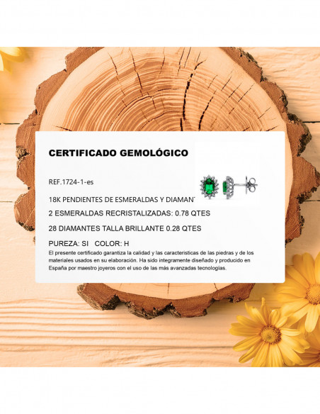 18K PENDIENTES ORO BLANCO ESMERALDA...