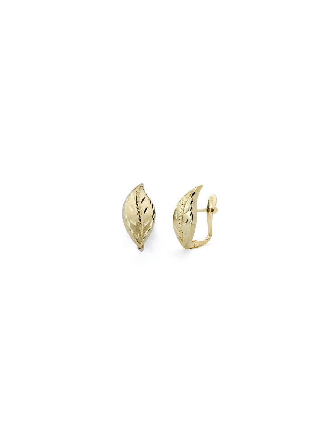18K PENDIENTES HOJA LAPIDADOS 18X8 MM
