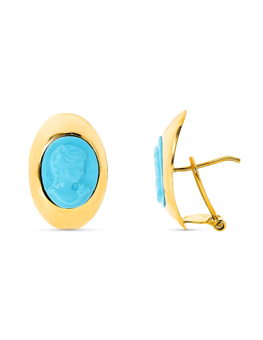 18K PENDIENTES CAMAFEO TURQUESA 20X13 MM