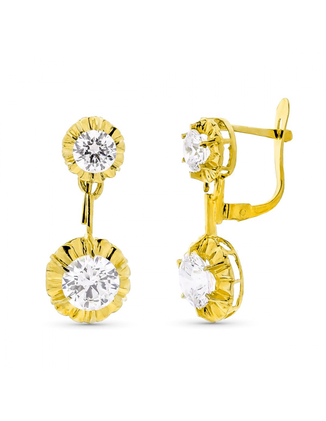 18K PENDIENTES ORO AMARILLO LARGOS DOBLE CUERPO