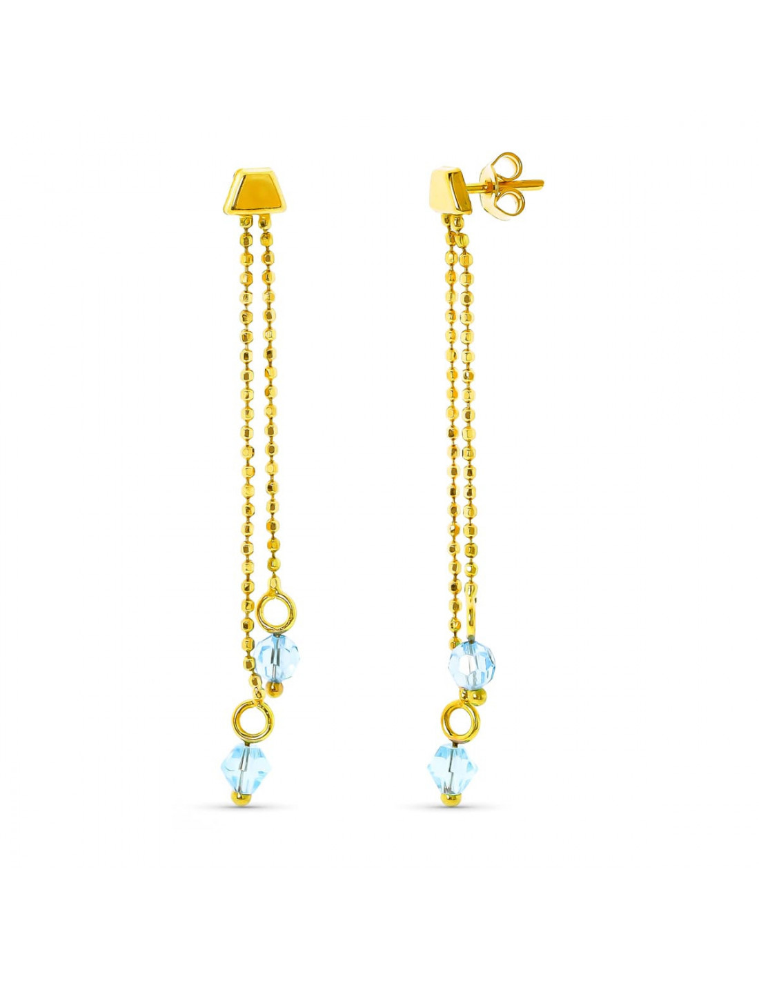 18K PENDIENTES ORO AMARILLO 2 CADENAS CON PIEDRA AGUAMARINA