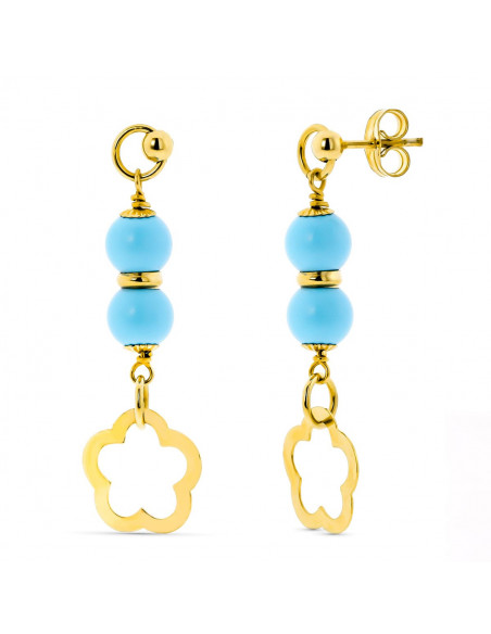 18K PENDIENTES ORO AMARILLO 2 BOLAS TURQUESA 6 MM FLOR