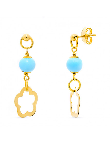 18K PENDIENTES ORO AMARILLO TURQUESA 6 MM FLOR PRESION