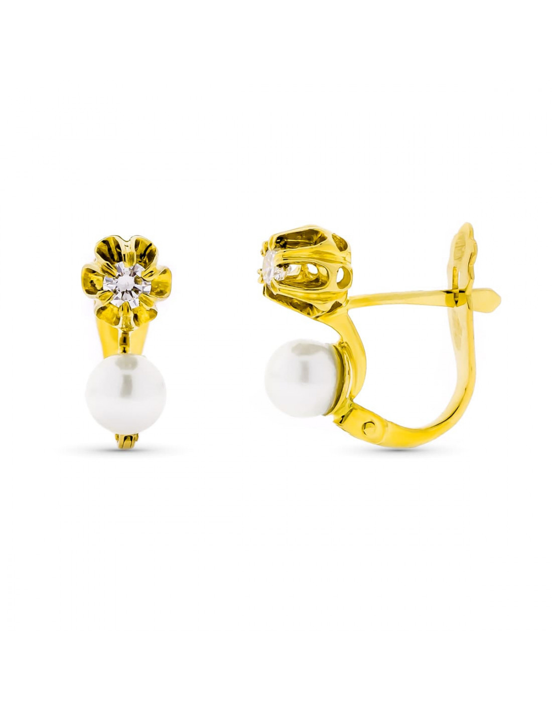 18K PENDIENTES ORO AMARILLO DIAMANTE CON PERLA Y GARRA