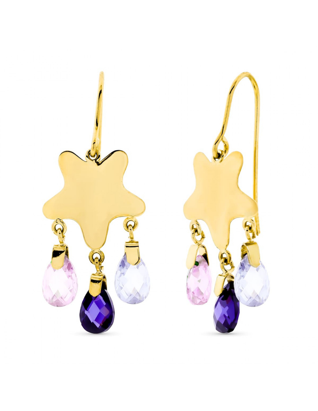 18K PENDIENTES ORO AMARILLO LARGOS PIEDRA COLOR ESTRELLA GANCHO