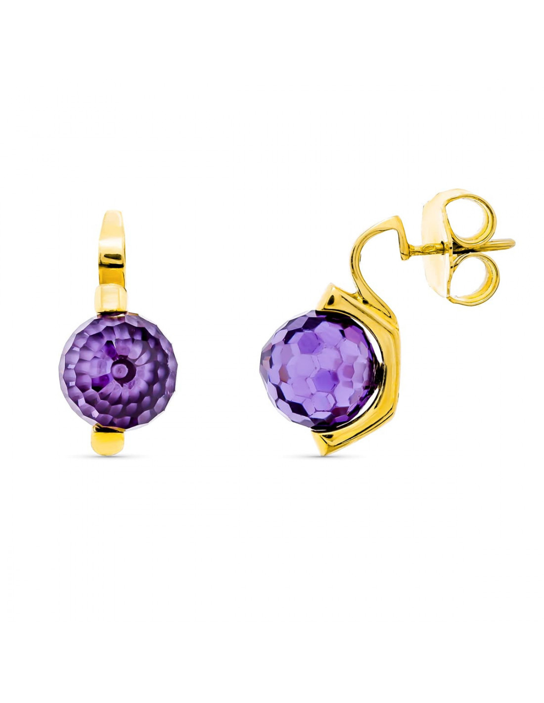 18K PENDIENTES ORO AMARILLO PIEDRA COLOR MORADA 10 MM