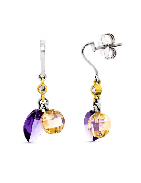18K PENDIENTES ORO BICOLOR PIEDRAS AMATISTA Y KUNCITA