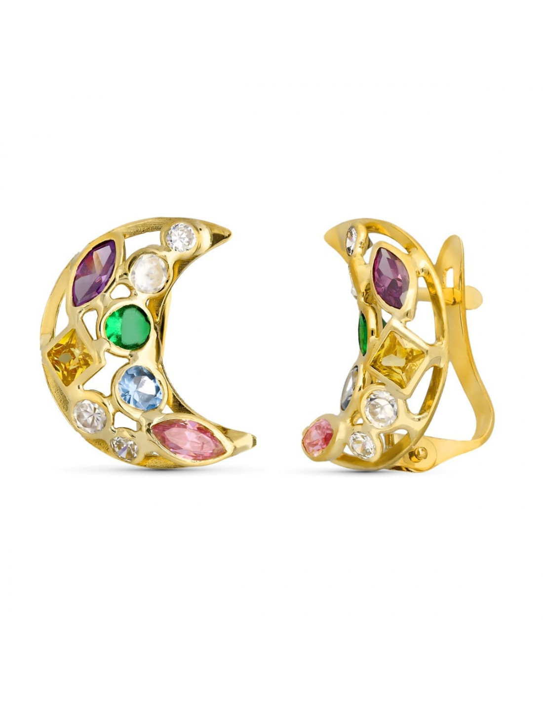 18K PENDIENTES ORO AMARILLO LUNA CIRCONITAS COLOR 14X10 MM CIERRE CATALAN