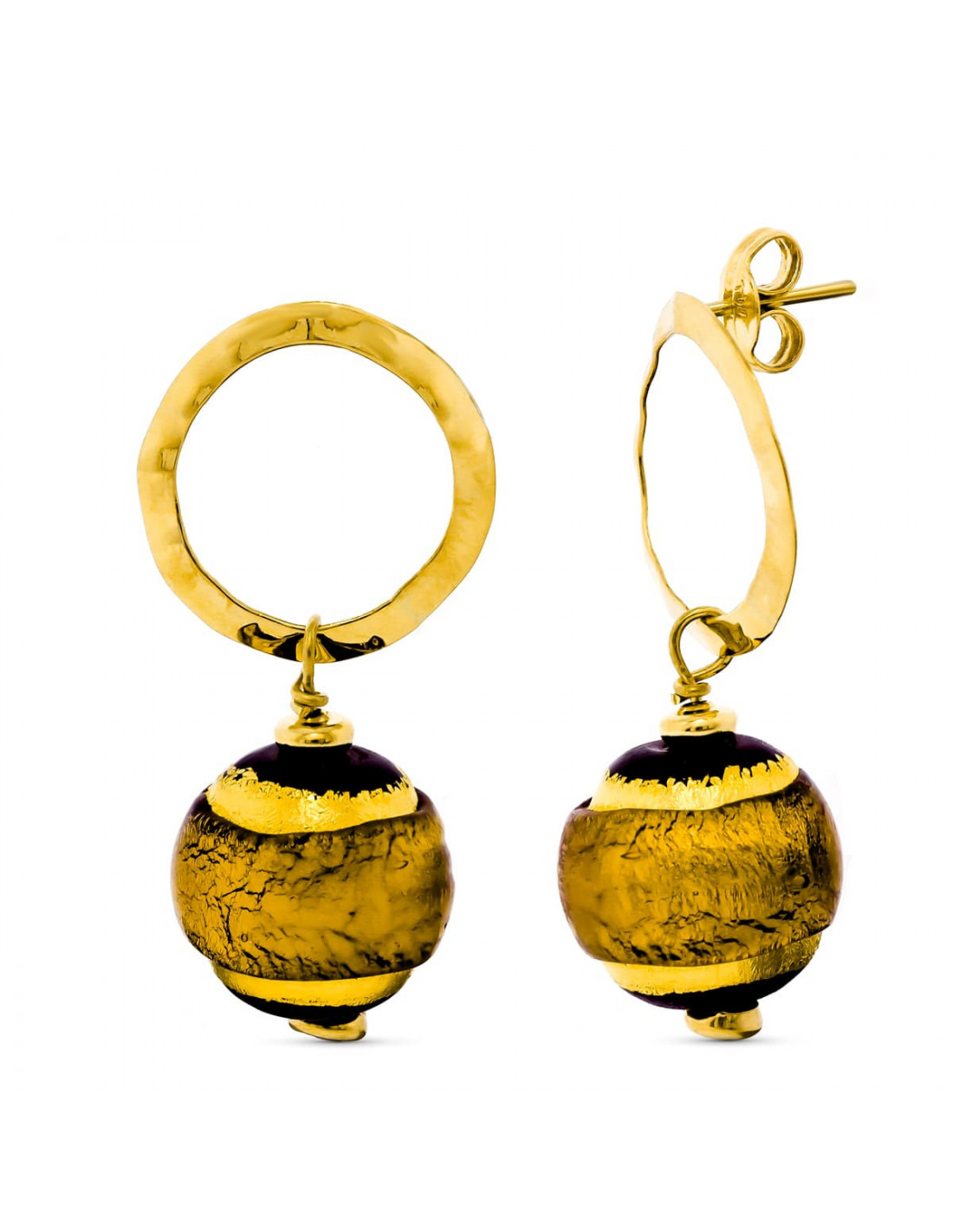 18K PENDIENTES ORO AMARILLO LARGO MURANO 14 MM TONOS MARRON