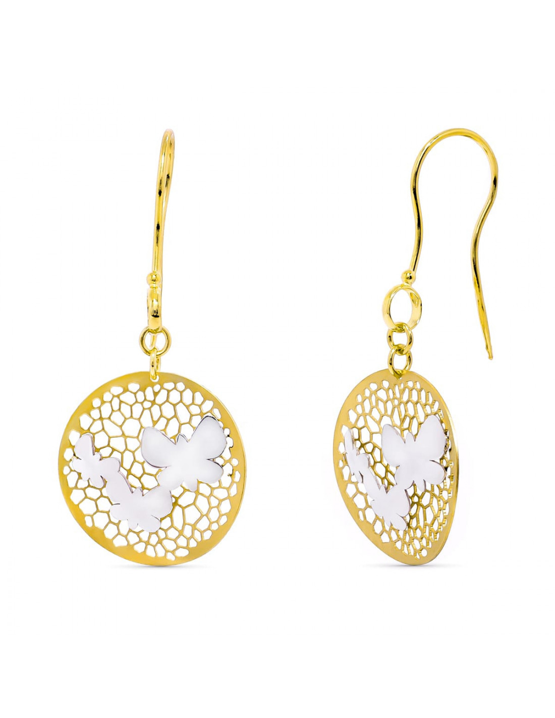 18K PENDIENTES ORO BICOLOR LARGOS MARIPOSAS. 43X18 MM CIERRE GANCHO