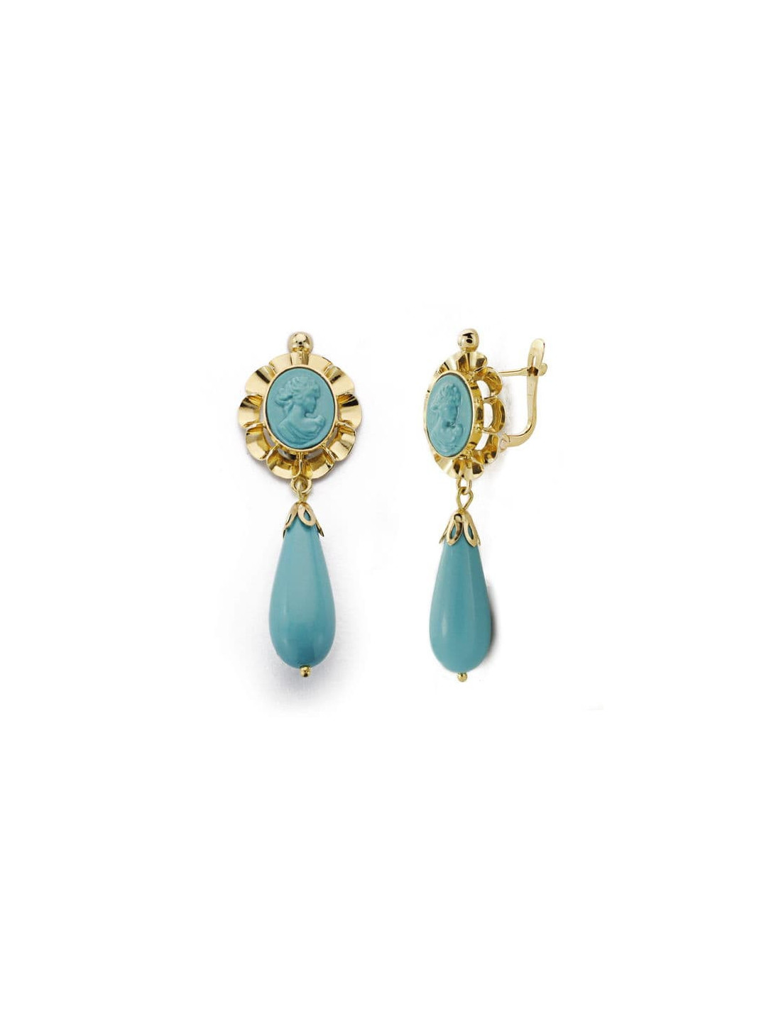 18K PENDIENTES CAMAFEO TURQUESA 43X14 MM