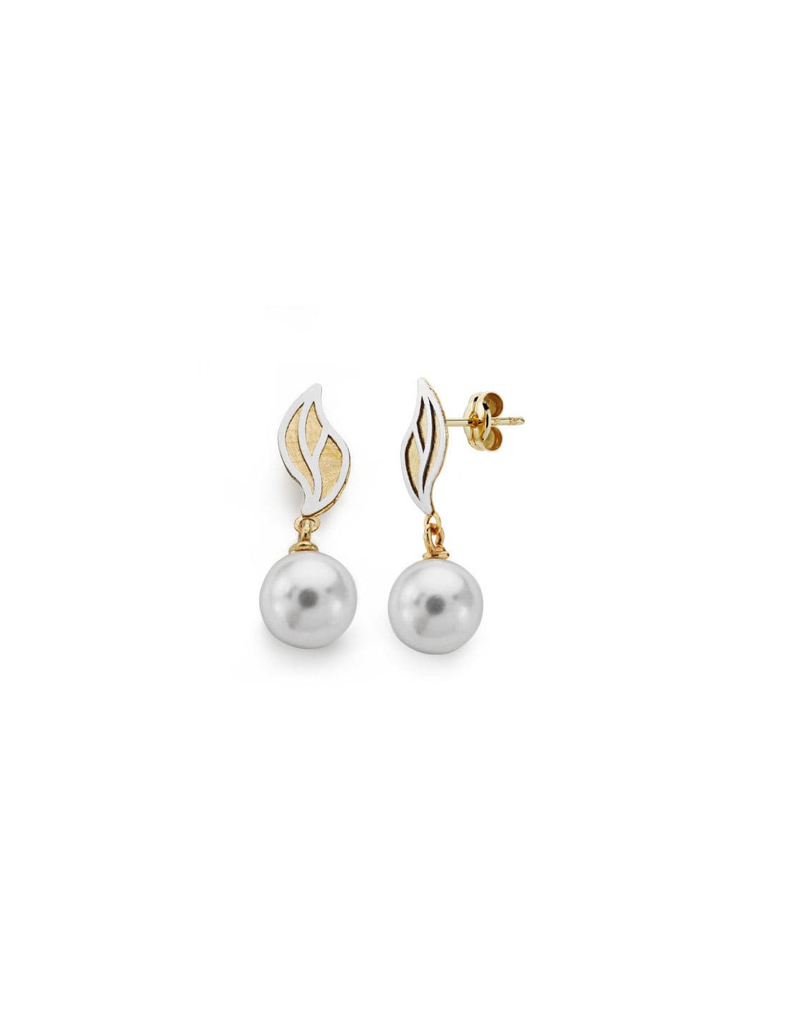 18K PENDIENTES BICOLOR PERLA 22X8 MM