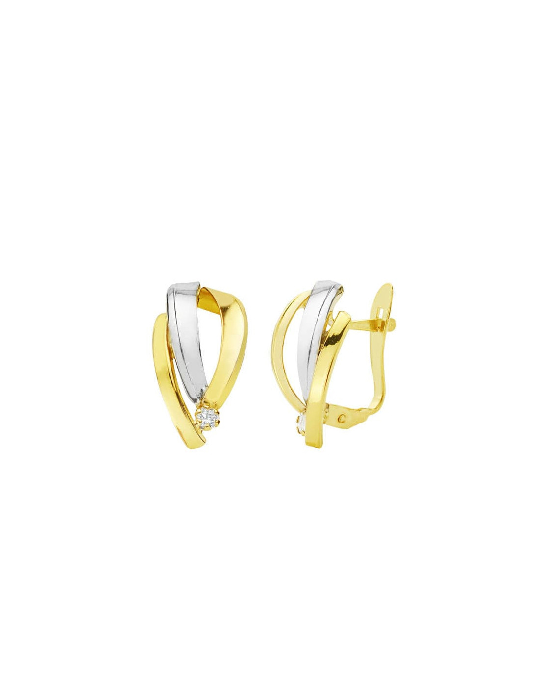 18K PENDIENTES ORO BICOLOR BANDAS 15X8 MM
