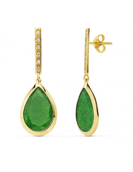 18K PENDIENTES PIEDRA VERDE 33X12 MM