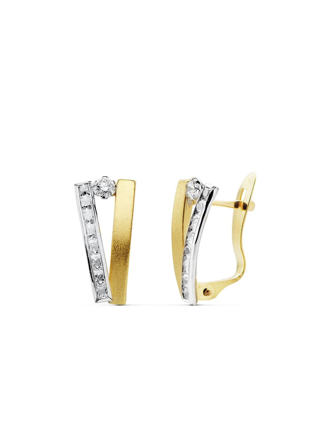 18K PENDIENTES ORO BICOLOR BANDAS 13X6 MM