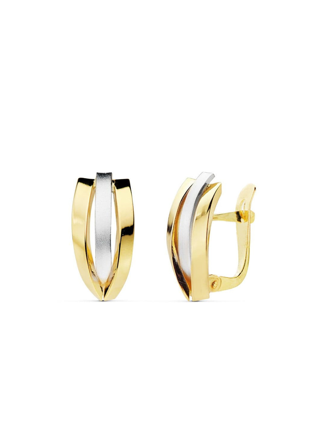 18K PENDIENTES ORO BICOLOR BANDAS 16X7 MM
