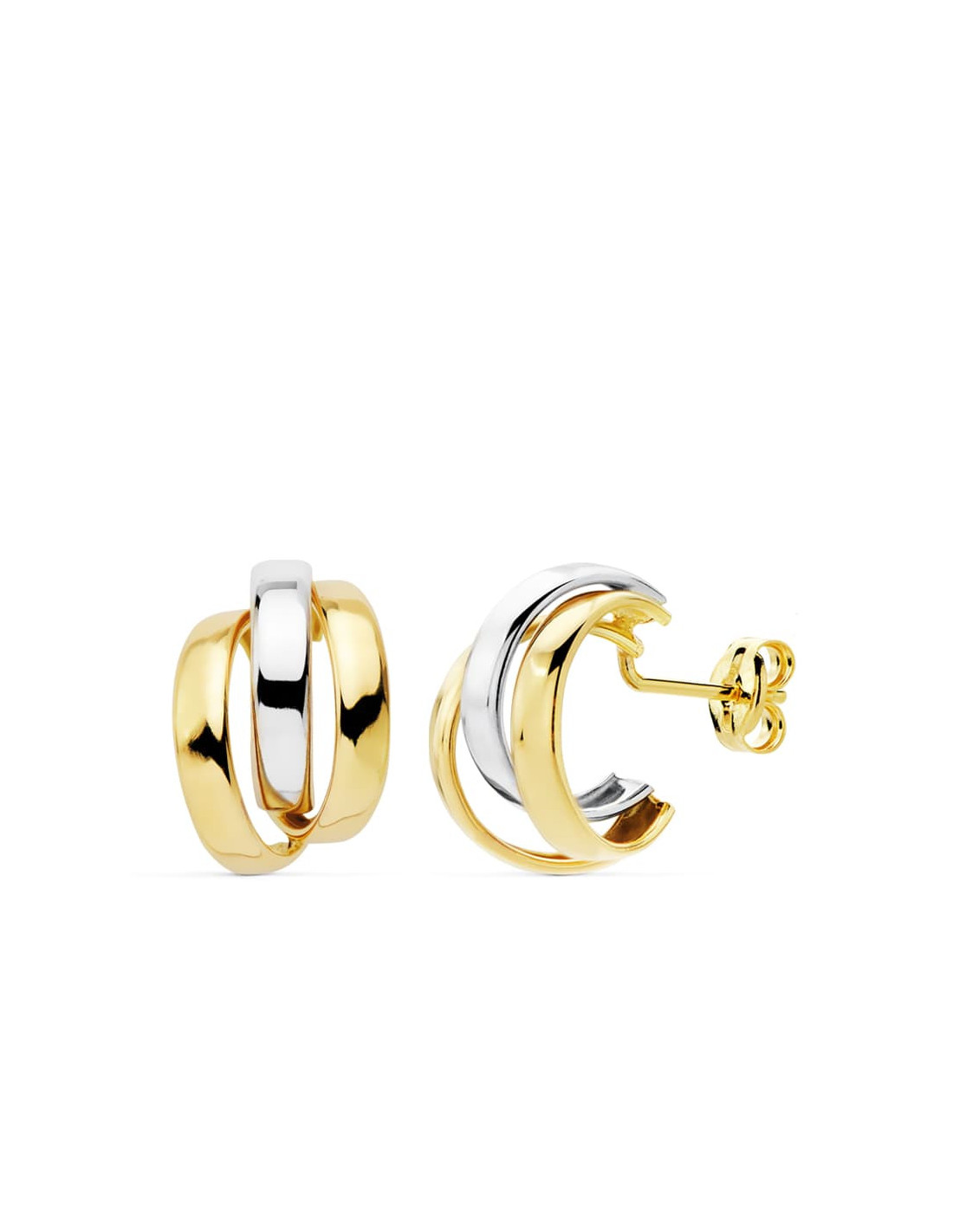 18K PENDIENTES BANDAS ORO BICOLOR 14X9 MM
