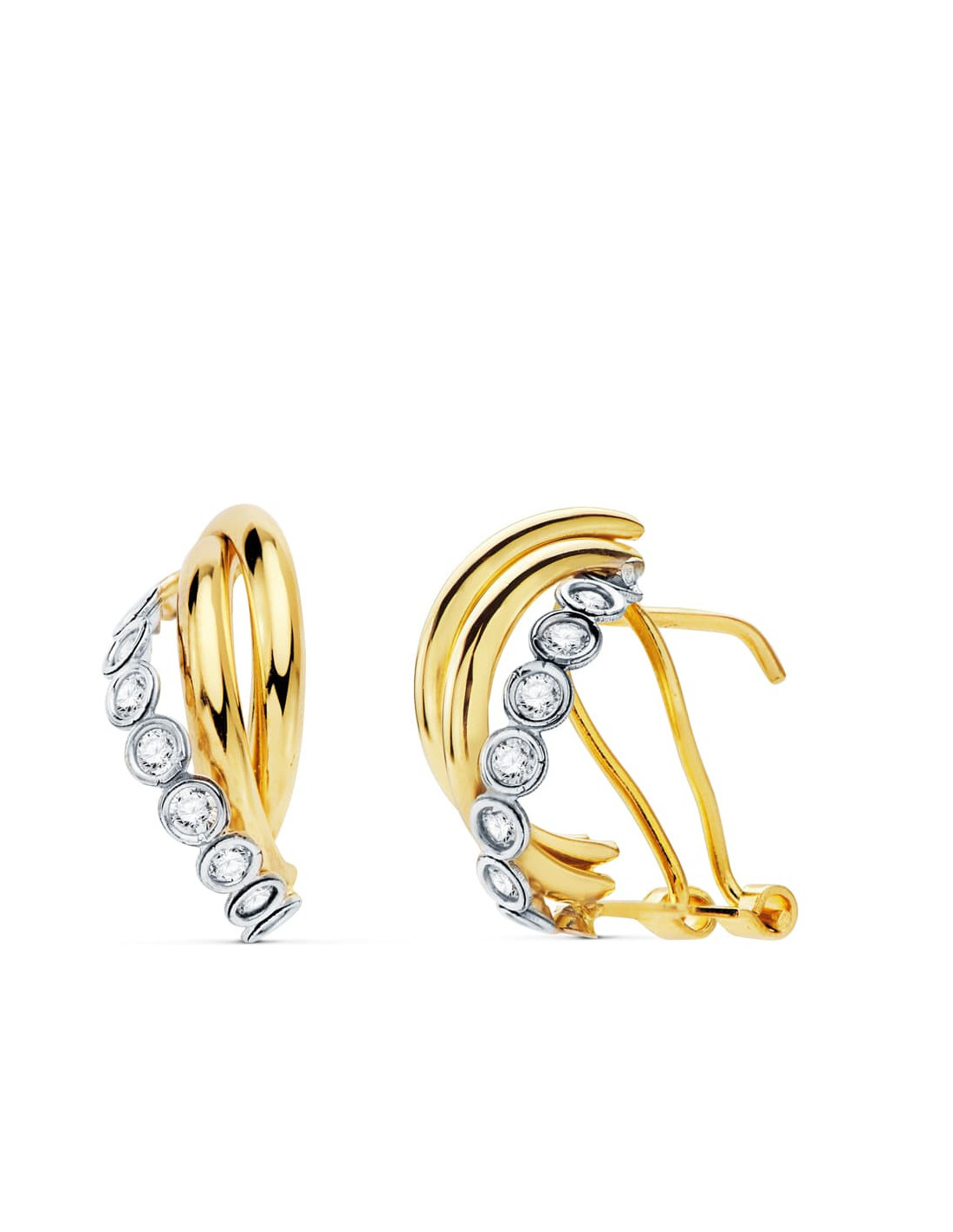 18K PENDIENTES ORO BICOLOR BANDAS 17X8 MM
