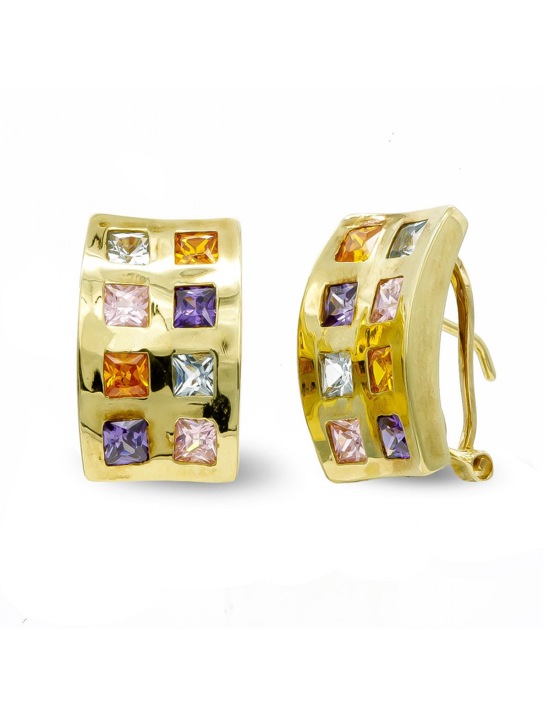 18K PENDIENTESO ORO AMARILLO Y PIEDRAS COLORES