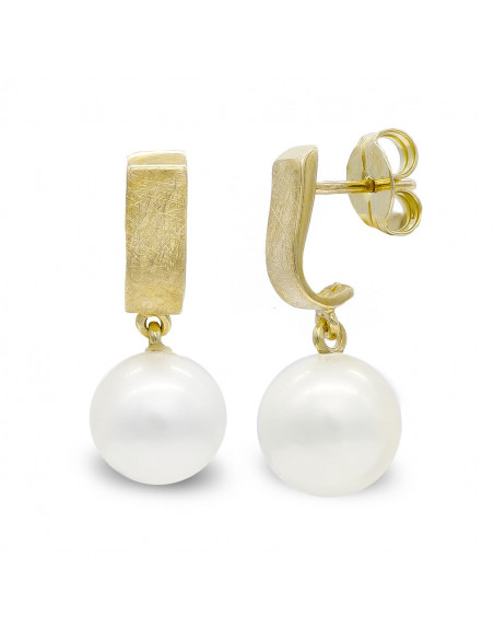 18K PENDIENTES ORO AMARILLO RAYADO Y PERLA 10 MM