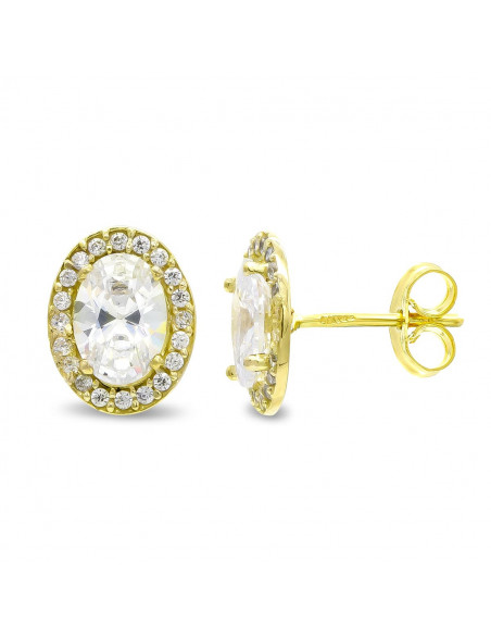 18K PENDIENTES OVAL CIRCONITAS 10X8 MM