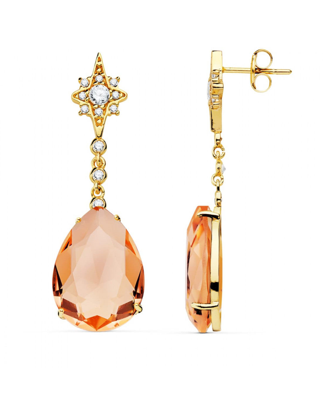 18K PENDIENTES PIEDRA PERA COLOR KUNCITA 41X13 MM