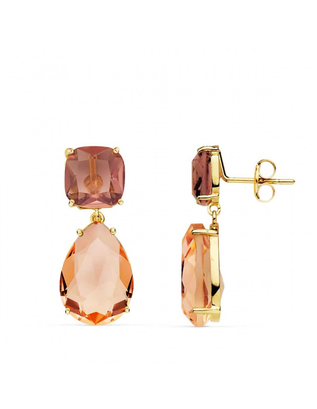 18K PENDIENTES PIEDRA PERA COLOR ALEJANDRITA Y KUNCITA 24X10 MM