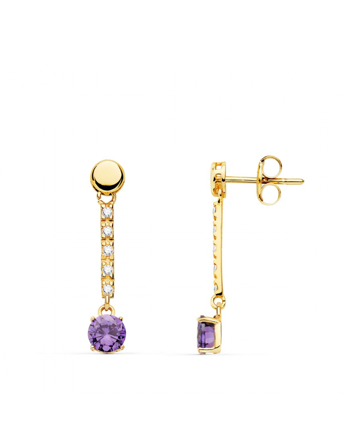 18K PENDIENTES ORO AMARILLO PIEDRA REDONDA COLOR AMATISTA 25X5 MM
