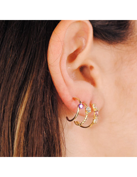 18K PENDIENTES ORO AMARILLO MEDIO ARO AMATISTA TALLA MARQUISE. 15X2 MM PRESION