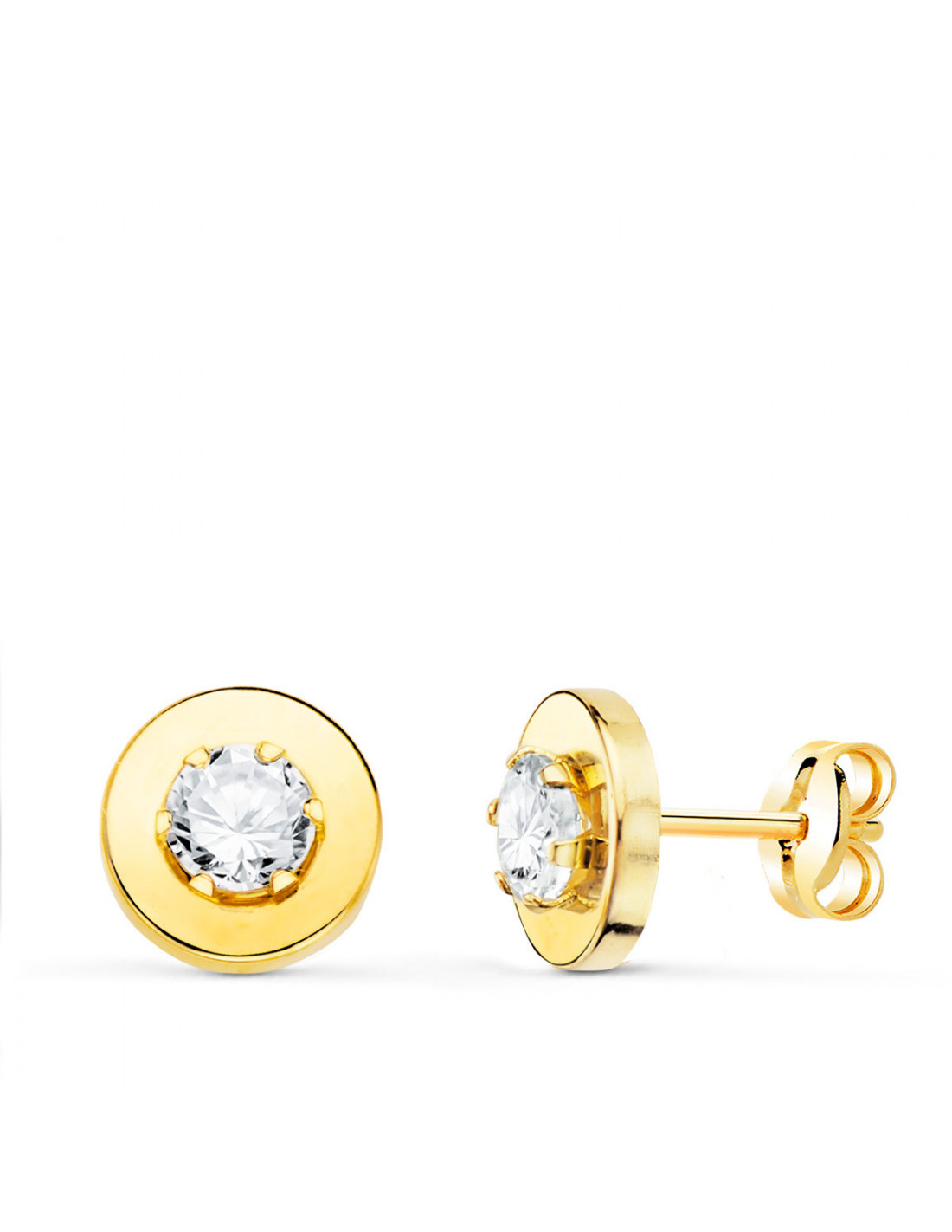 18K PENDIENTES ORO AMARILLO CERCO LISO Y CIRCONITAS EN GARRAS 4MM. 7,5 MM