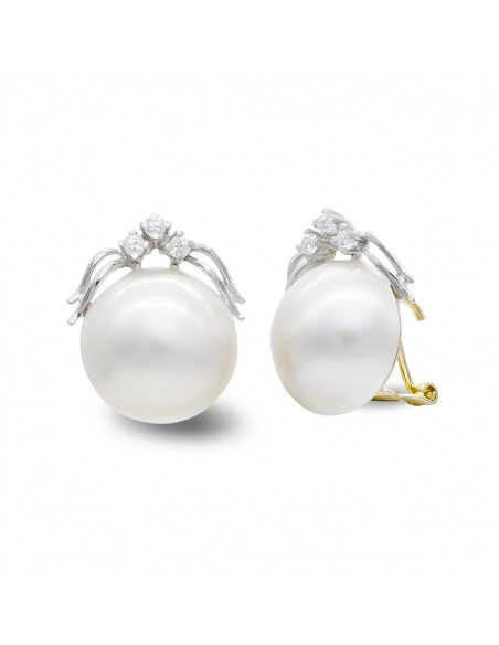 18K PENDIENTES ORO BICOLOR PERLA JAPONESA 14-16 MM Y CIRCONITAS