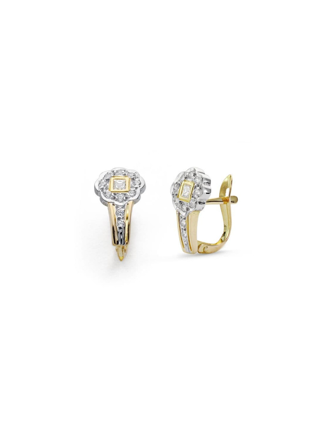 18K PENDIENTES COMUNION BICOLOR CIRCONITAS 14X8 MM