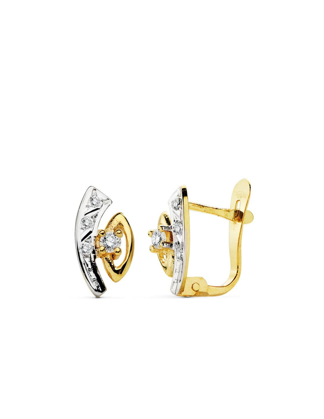18K PENDIENTES BICOLOR CIRCONITAS 11X5 MM