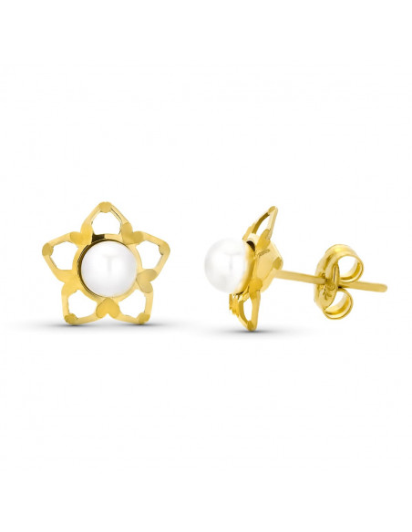 9K PENDIENTES ORO AMARILLO ESTRELLA PERLA 4MM TOTAL 9MM PRESION