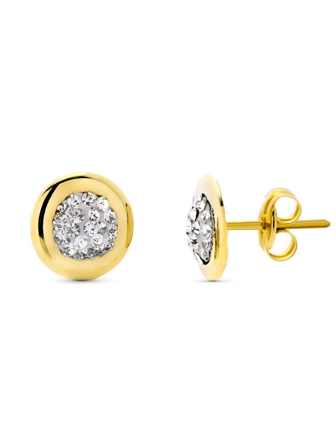9K PENDIENTES ORO AMARILLO REDONDOS 8 MM CIERRE PRESION