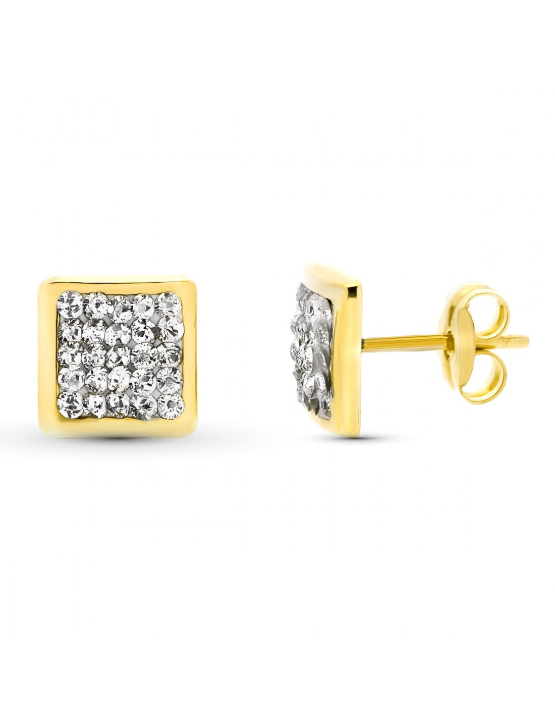 9K PENDIENTES ORO AMARILLO CUADRADOS. CIRCONITAS 7 X 7 MM PRESION