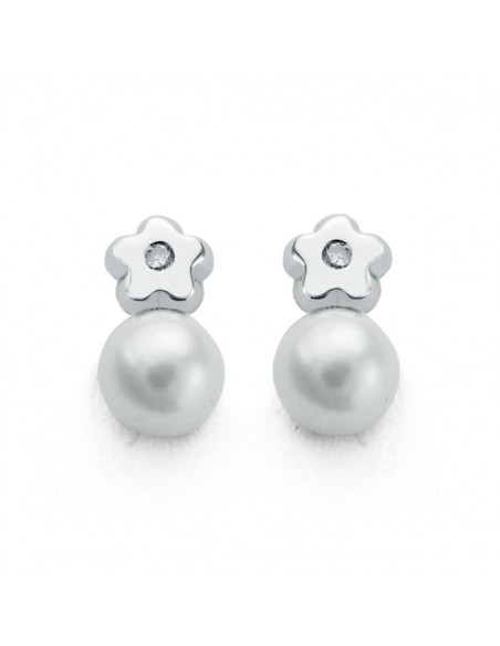 9K PENDIENTES ORO BLANCO DIAMANTES 9X5 MM 0.02 CTS SI-H CIERRE TORNILLO
