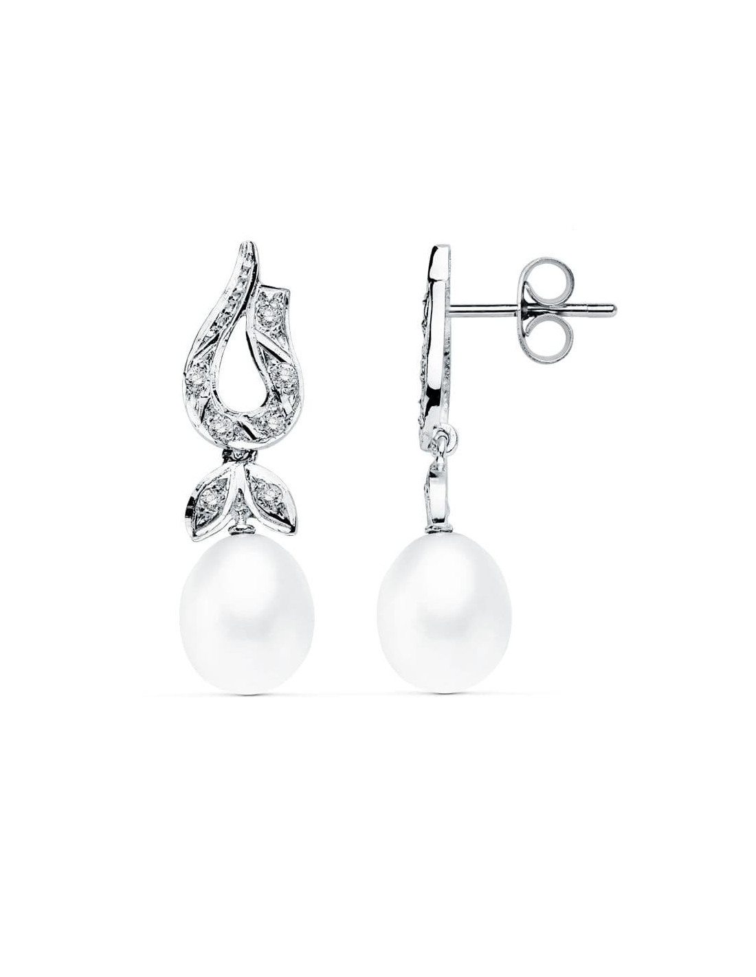 18K PENDIENTES ORO BLANCO PERLA 26X8 MM