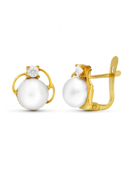 18K PENDIENTES PERLA Y CIRCONITAS 9X9 MM