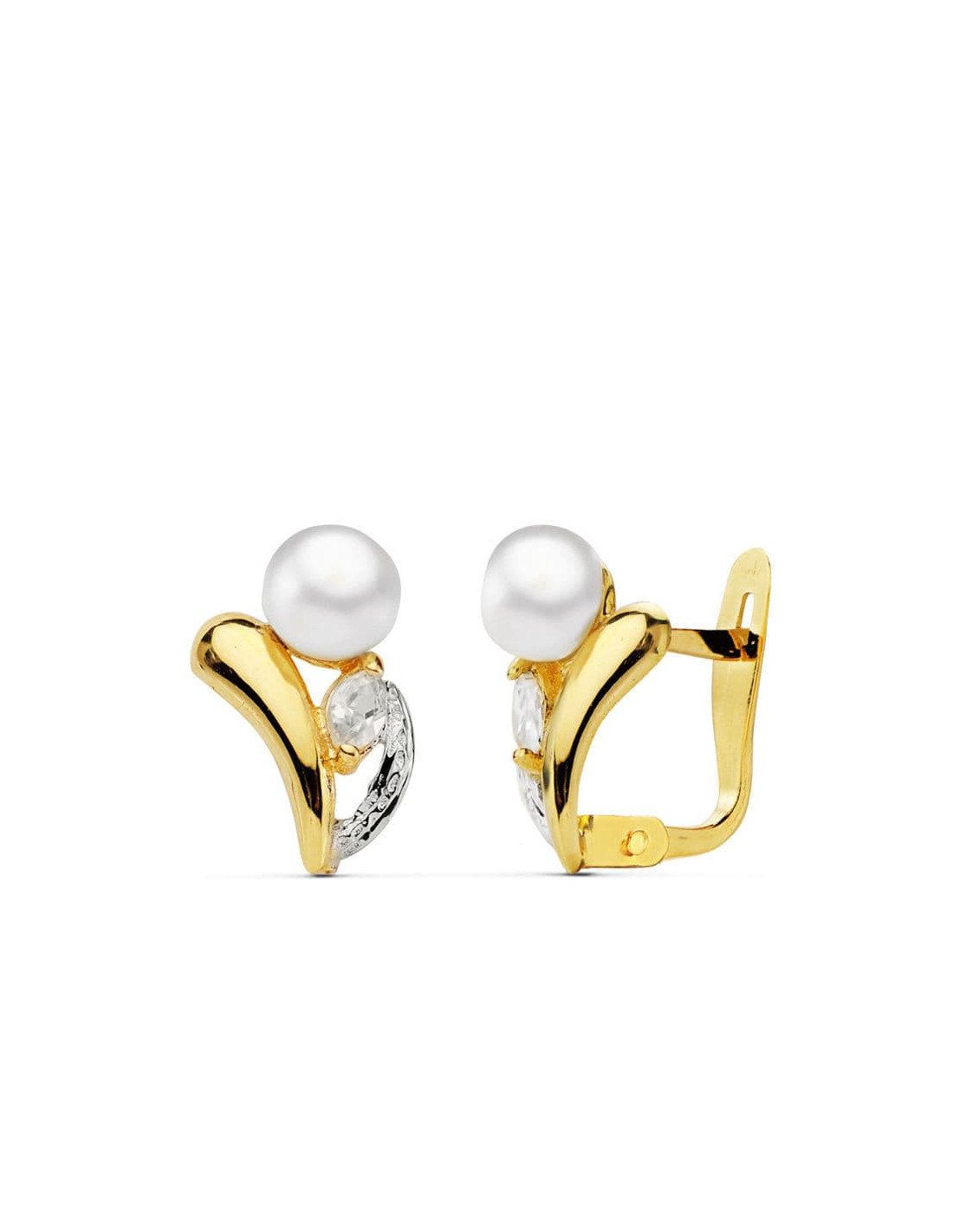 18K PENDIENTES PERLA Y PIEDRA 11X8 MM