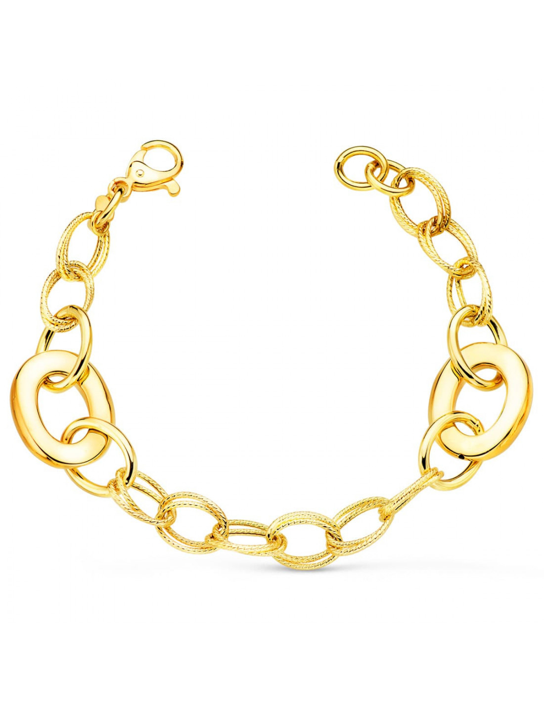 18K PULSERA ORO AMARILLO ESLABONES HUECOS ANCHO 16 MM LARGO 20 CM