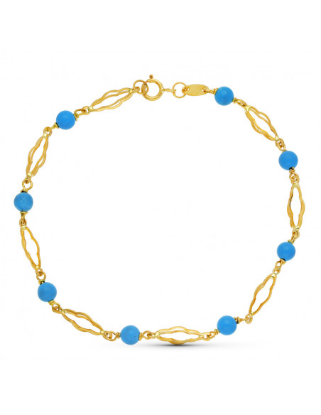 18K PULSERA ORO AMARILLO TURQUESA 4 MM 18.5CM