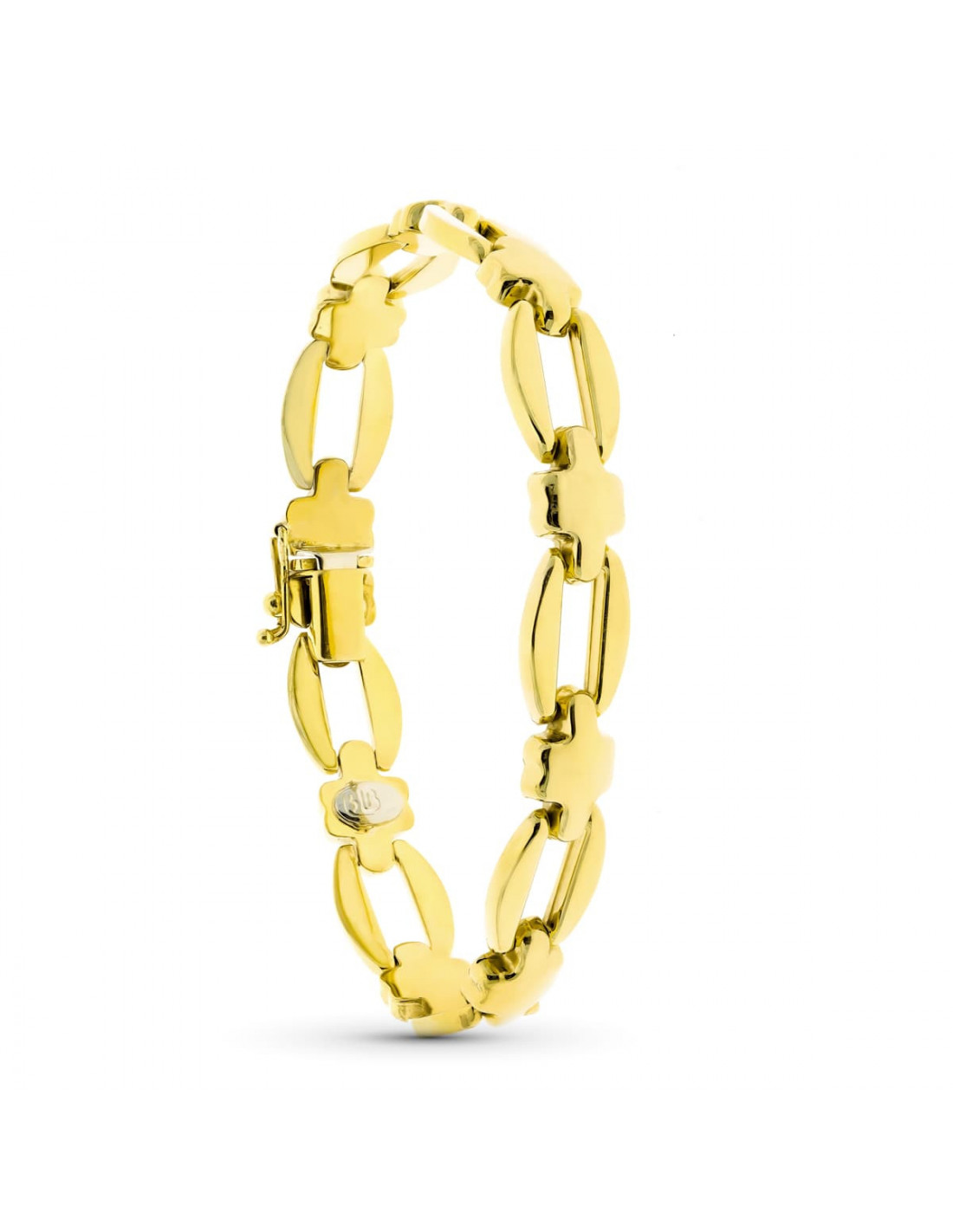 18K PULSERA ORO AMARILLO ESLABON OVAL Y CRUZ