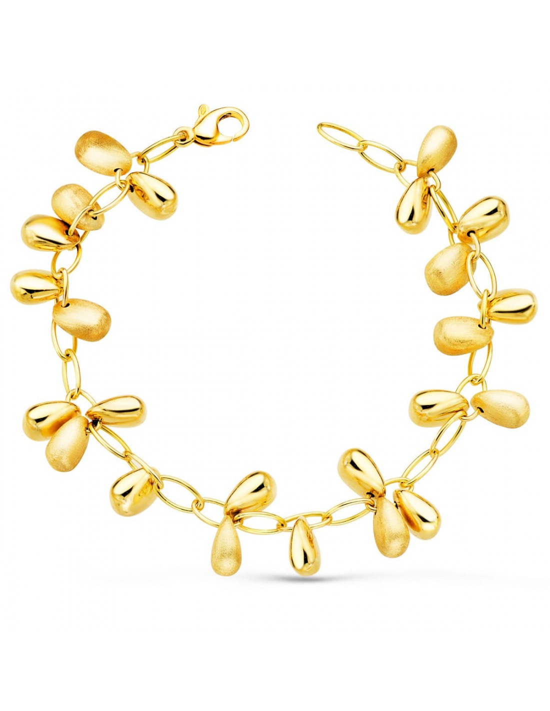 18K PULSERA ORO AMARILLO ESLABONES CON COLGANTES MATE Y BRILLO 19.5 CM