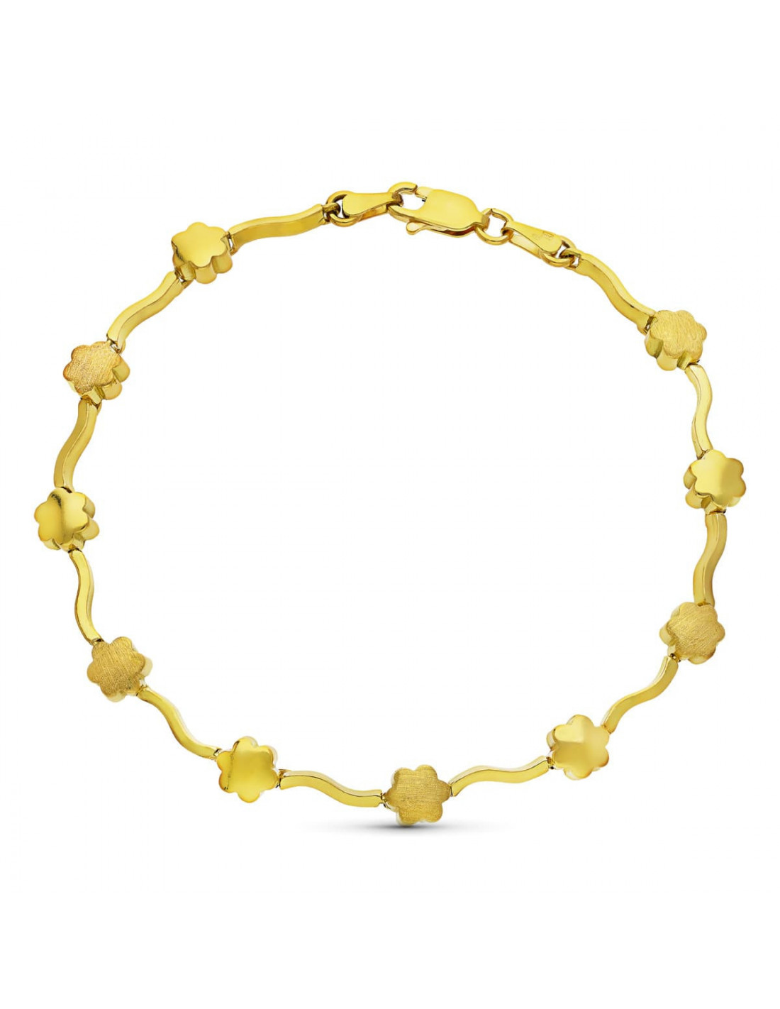 18K PULSERA ORO AMARILLO FLORES MATE Y BRILLO